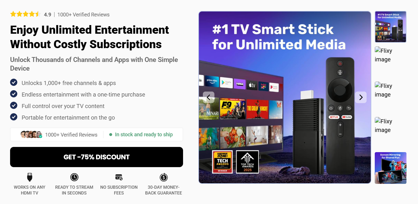The Flixy TV Stick Canada is available through its official website and authorized online retailers. Purchasing directly from the official site ensures you receive an authentic product with warranty coverage, customer support, and access to exclusive discounts or bundle offers. Always buy from trusted sources to avoid counterfeit or low-quality products.